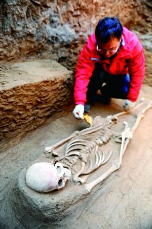 央廣網河南分網消息 據新華網報道:3月17日,考古人員在河南焦作商周文化遺址墓葬區發掘清理。近日,考古工作者在河南省焦作市聶村大沙河濕地發現一處大型商周時期文化遺址,在搶救性發掘中,出土了貝幣、貝殼飾品、青銅器、玉器、陶器等珍貴文物。據考古人員介紹,該遺址的考古發現對研究商周時期當地的社會、經濟發展及墓制葬俗提供了實物依據。(新華社發)