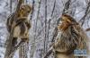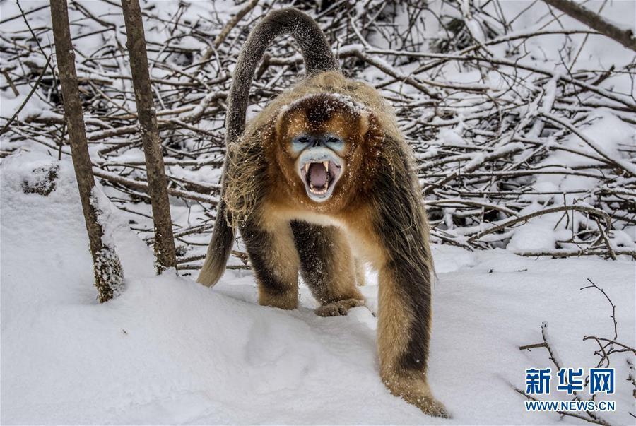 1月10日,在湖北省神農架大龍潭金絲猴保護基地,一只金絲猴在樹林中行走。經過動物保護人員的多年努力,加之生態環境的不斷改善,湖北省神農架金絲猴得到有效保護。目前,神農架金絲猴數量比20世紀80年代最少時增加了一倍多。新華社記者 杜華舉 攝 圖片來源:新華網