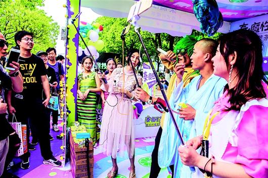 圖為:4月29日,直播節現場,人氣主播線下與粉絲們互動。(湖北日報全媒記者 梅濤 通訊員 胡佳 攝)