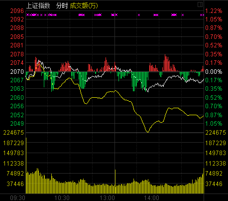 新華網(wǎng)消息 今日兩市雙雙低開,指數(shù)全天維持窄幅震蕩態(tài)勢(shì),表現(xiàn)平淡。創(chuàng)業(yè)板指接連下挫表現(xiàn)弱于主板,午盤跳水盤中一度下挫2%,擊穿年線,多只股票跌停。截至收盤,滬指報(bào)2067.28點(diǎn),下跌3.08點(diǎn),跌幅0.15%,成交1020.30億元;深成指報(bào)8261.91點(diǎn),下跌42.50點(diǎn),跌幅0.58%,成交1252.34億元;創(chuàng)業(yè)板指報(bào)1318.62點(diǎn),下跌22.65點(diǎn),跌幅1.69%,成交280.27億元。