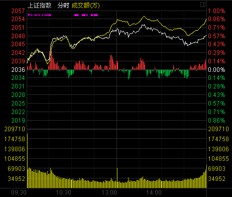 截至收盤,滬指報2048.33點,上漲11.92點,漲幅0.59%,成交800.11億元;深成指報7343.27點,上漲30.65點,漲幅0.42%,成交1250.91億元;創業板指報1404.71點,上漲15.90點,漲幅1.14%,成交343.82億元。