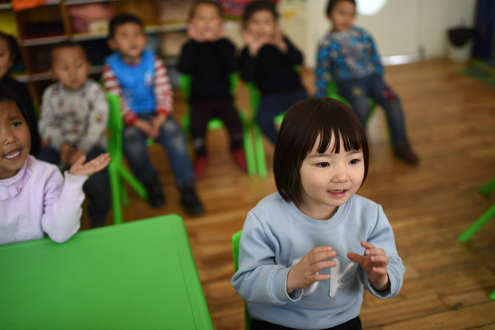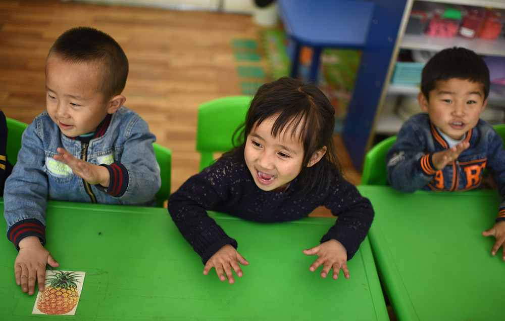 3月22日,青海省黃南藏族自治州幼兒園的回族女孩馬歡馨在做手指操。 從2016年春季學期開始,青海省在海北、海南、黃南、果洛、玉樹五個藏族自治州及海西蒙古族藏族自治州實行包括學前三年、義務教育九年、高中及中職三年的15年免費教育,西寧市、海東市的貧困家庭學生也享受上述政策,首批惠及學生86.1萬名。 “十三五”期間,青海省還將以擴大教育資源、促進教育公平為重點,加快廣大牧區雙語幼兒園建設,同時進一步優化中小學布局結構。新華社記者 張宏祥 攝 -