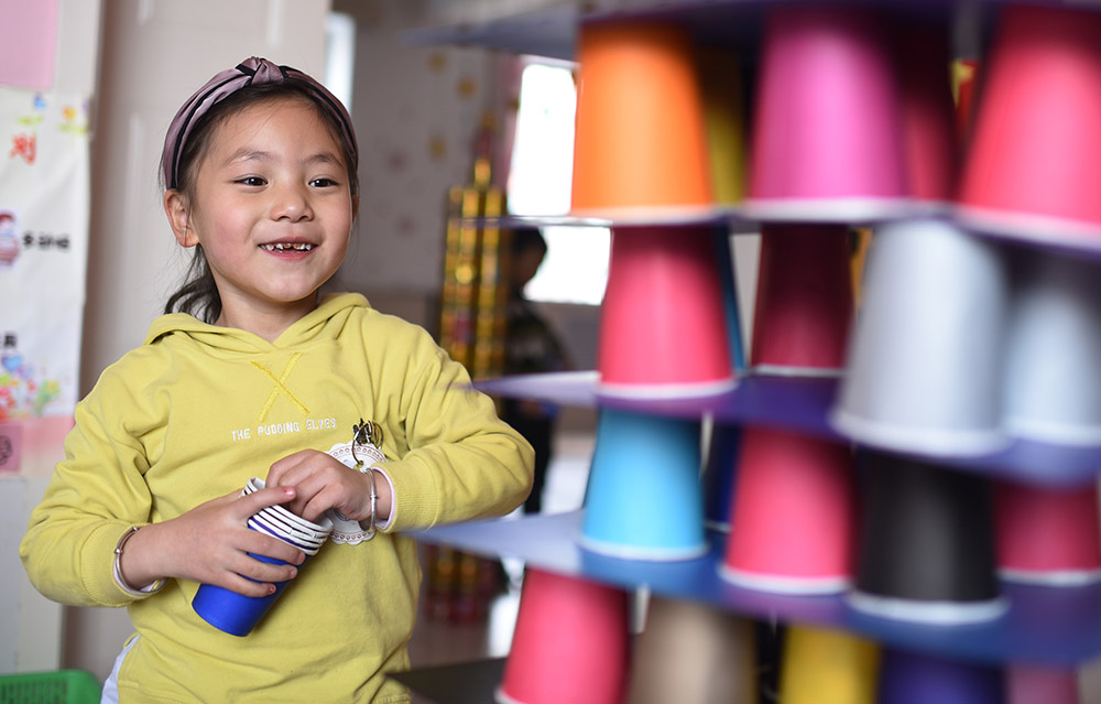 青海省黃南藏族自治州幼兒園大班學生白瑪蘭澤在做游戲(3月21日攝)。 從2016年春季學期開始,青海省在海北、海南、黃南、果洛、玉樹五個藏族自治州及海西蒙古族藏族自治州實行包括學前三年、義務教育九年、高中及中職三年的15年免費教育,西寧市、海東市的貧困家庭學生也享受上述政策,首批惠及學生86.1萬名。 “十三五”期間,青海省還將以擴大教育資源、促進教育公平為重點,加快廣大牧區雙語幼兒園建設,同時進一步優化中小學布局結構。新華社記者 張宏祥 攝