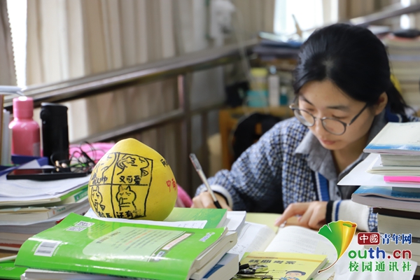 “大膽朝著前方邁進(jìn),考研加油鴨。”“你是最胖的噠!相信自己”30多名學(xué)生干部拿起成堆的柚子,利用課余時(shí)間在上面畫(huà)上流行的趣味表情,并上面寫(xiě)上了征集到的祝福,經(jīng)一周加工完畢。