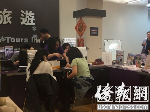 華裔民眾前往旅行社咨詢假期出行。(僑報(bào)記者陳辰攝)