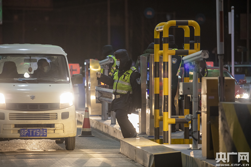 防疫人員對部分進京車輛進行檢查(央廣網記者 張佳琪 攝)