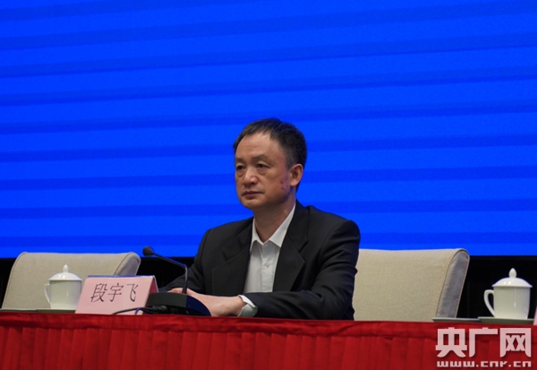 圖為新聞發布會現場。段宇飛介紹廣東疫情防控相關情況。(央廣網記者 鄭澍 攝)