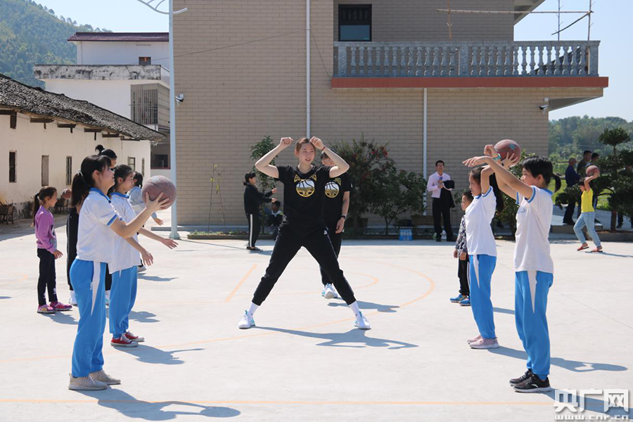 廣東女子籃球隊代表給廊田村青少年進行籃球基本教學(央廣網發 通訊員供圖)