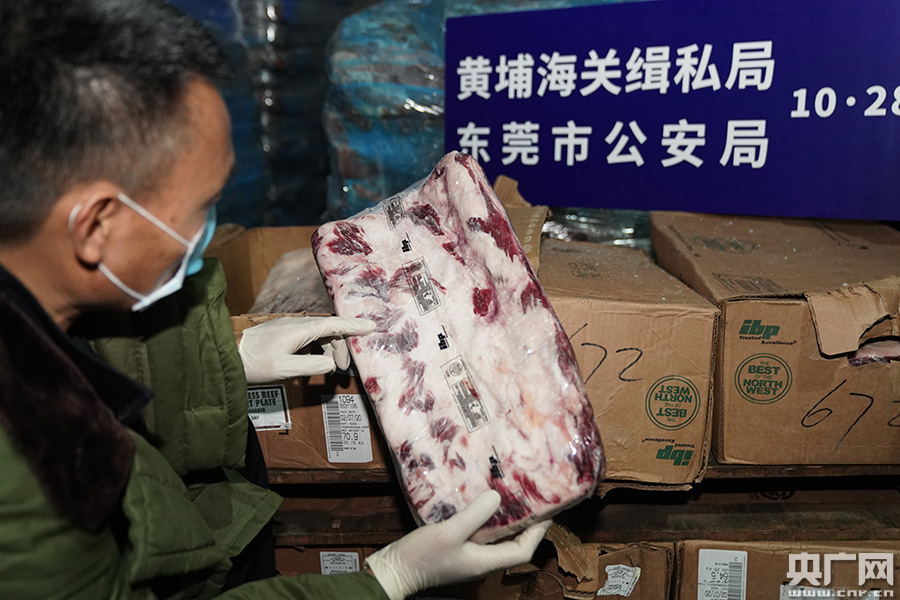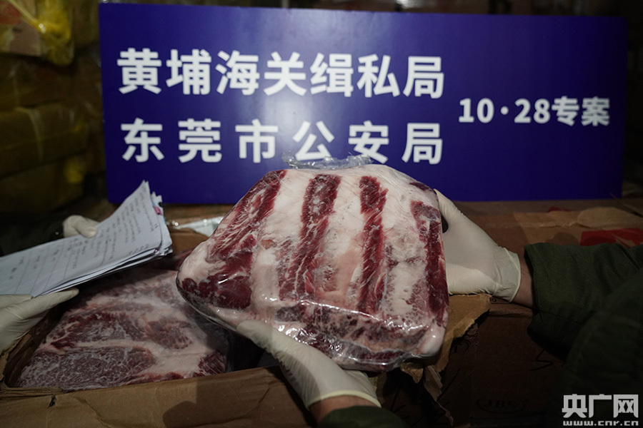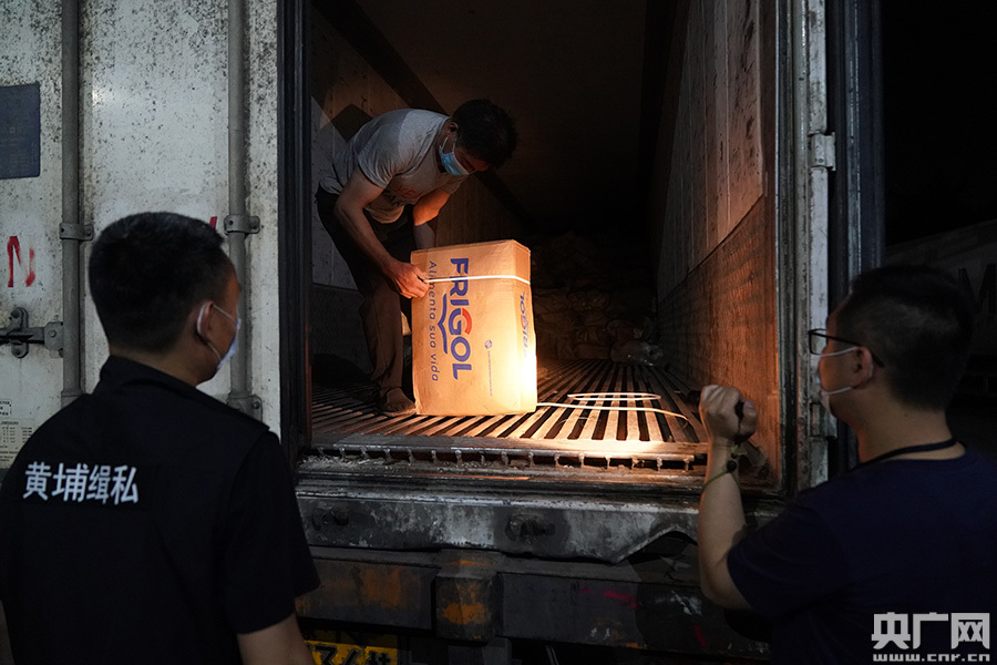 黃埔海關聯合東莞市公安局現場查獲的走私凍品(央廣網發 謝政 攝)