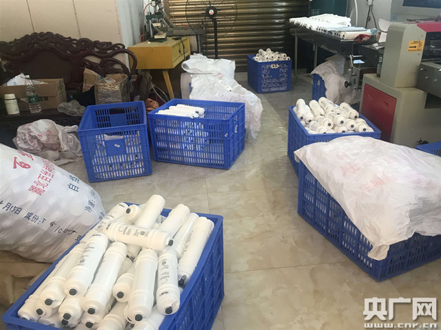 佛山特大假冒“美的”凈水器濾芯案-查獲涉案物品(央廣網發 警方供圖)