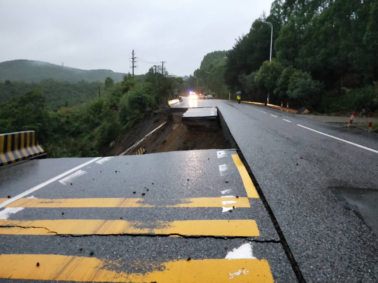 受持續強降雨影響,廣東翁源縣G106線獅子山段右幅路基掏空并下塌,于今天(9日)早上6點10分交通中斷,通車時間暫時無法預計。