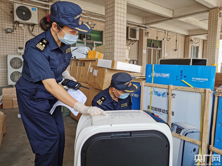 △廣州海關所屬佛山海關駐順德辦事處關員對市場采購出口貨物進行現場查驗(央廣網發 石靖輝 攝)