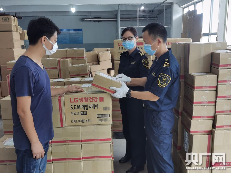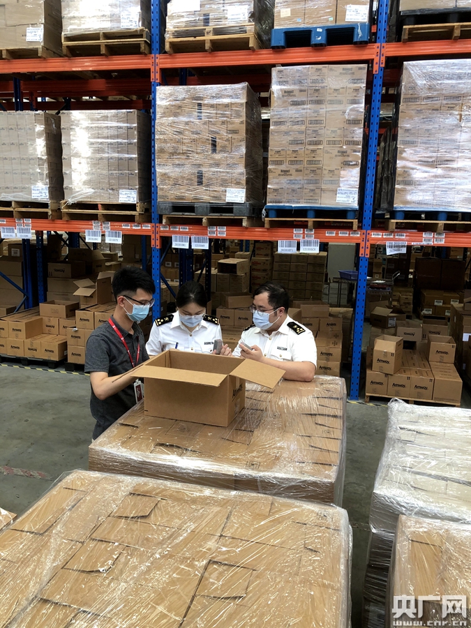 廣州海關(guān)所屬南沙海關(guān)關(guān)員對跨境電商貨物進(jìn)行監(jiān)管(央廣網(wǎng)發(fā) 海關(guān)供圖)