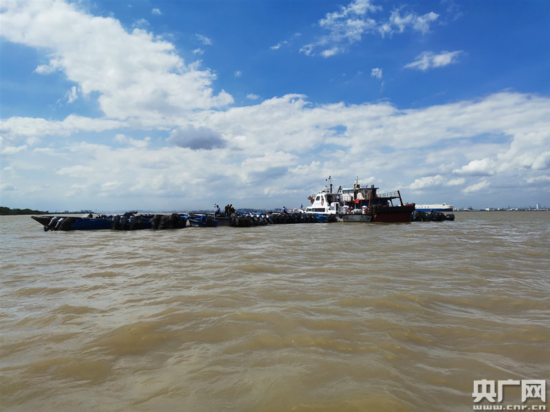 多部門聯勤聯動將可疑船舶拖出(央廣網發 通訊員供圖)