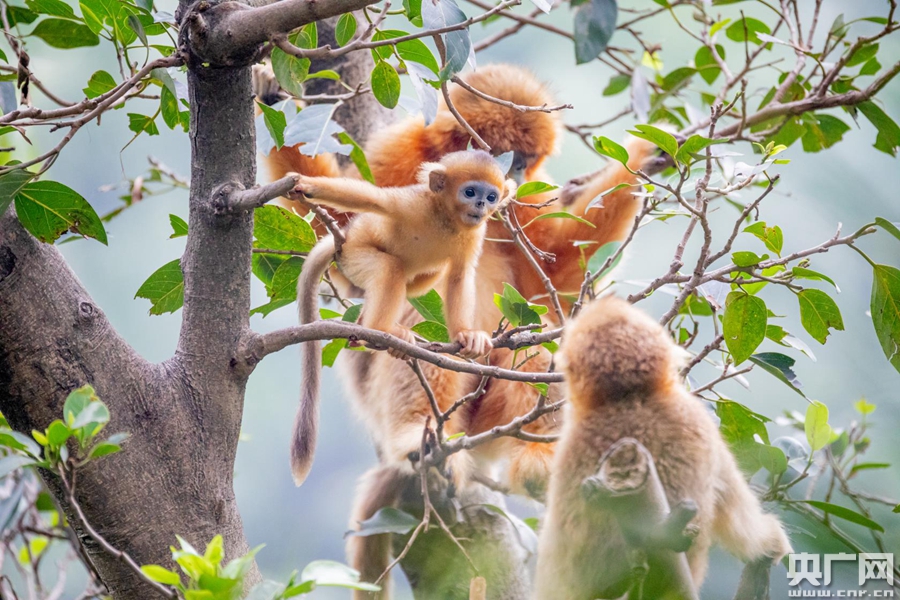 目前,川金絲猴的幼崽各項生長指標良好,已經熟悉金猴王國各項“設備”,能靈活騰躍到樹梢上,動作像飛鳥一樣矯健。