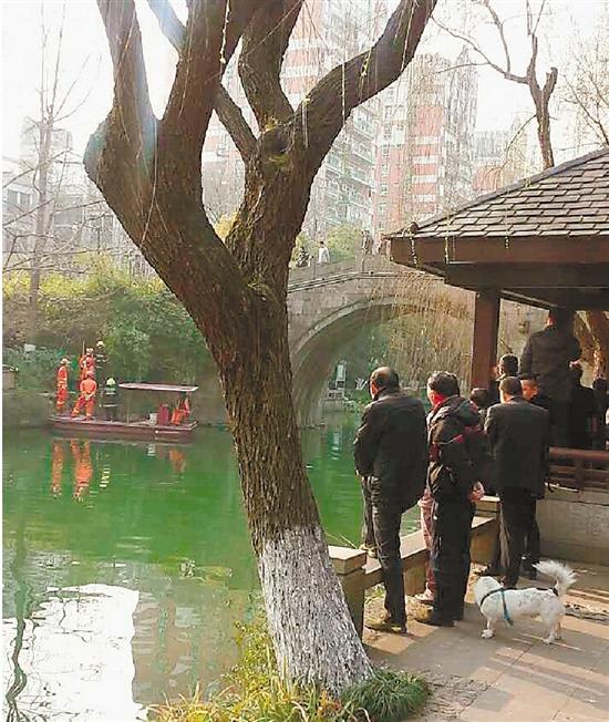 案發(fā)現(xiàn)場(chǎng):橋上和岸邊站滿了圍觀群眾。