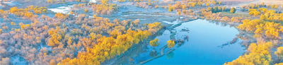 金秋時節(jié),內(nèi)蒙古自治區(qū)額濟(jì)納旗胡楊林在陽光中迸發(fā)出金色的魅力。 新華社發(fā)