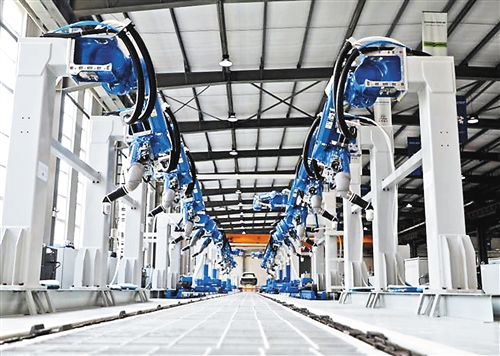 日前,著名世界機器人企業安川都林在河北香河機器人小鎮投產運營。圖為產品測試線現場。王曉桐攝