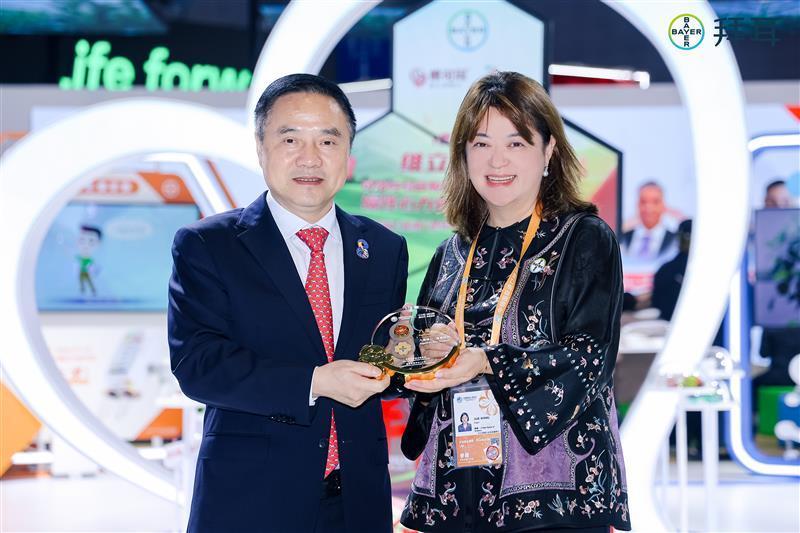 本次進博會期間,中國國際進口博覽局黨委書記、副局長,國家會展中心董事長吳政平一行蒞臨拜耳展臺,向連續第八年參展的拜耳中國頒發“8年全勤”獎牌,以表彰其多年來在健康和營養領域為進博會作出的積極貢獻。拜耳中國公共與政府事務及可持續發展副總裁王甦女士代表拜耳接受榮譽。這一獎項體現了進博局對拜耳長期支持進博會、持續推動開放合作的高度認可。