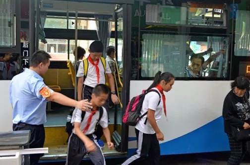 企業管理人員趕赴一線加強現場管理,在途徑學校的路口駐守志愿者引導學生安全候及上下車,確保學生安全到校。