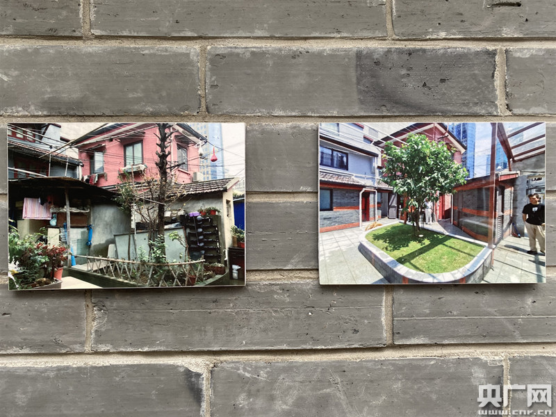 黃浦區南京東路街道江陰路72號內展示著“微更新”前后的對照(央廣網記者唐奇云 攝)