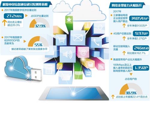 “數字經濟已成為近年來帶動經濟增長的核心動力,2017年我國數字經濟對GDP的貢獻率為55%,接近甚至超越了某些發達國家水平。”中國信息通信研究院政策與經濟研究所所長魯春叢表示,根據中國信息通信研究院測算,2017年我國數字經濟總量達到27.2萬億元,同比名義增長20.3%,占GDP比重達到32.9%。隨著信息化發展環境的全面推進,我國數字經濟發展“水漲船高”。