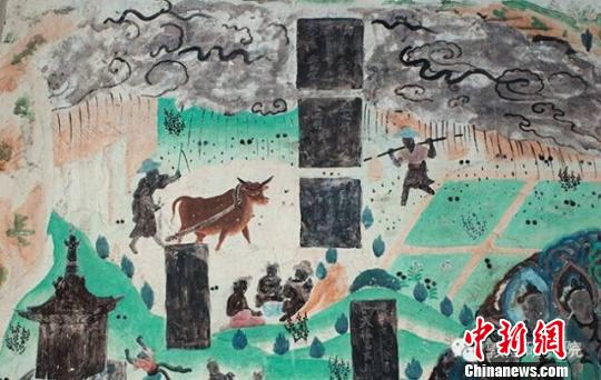 莫高窟第23窟北壁畫面上烏云迷漫,細雨瀝瀝,一位農夫揮鞭策牛耕地,一位農夫肩挑莊稼!《鼗脱芯吭禾峁z